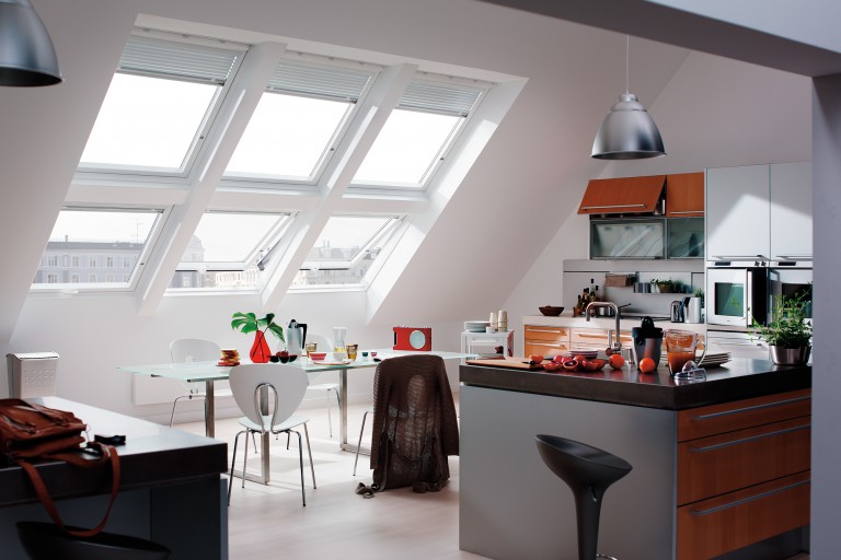 VELUX propone la finestra per tetti bianca, dal design lineare, che si affianca alla proposta tradizionale di finestre in pino per creare nuove possibilità di arredo.
