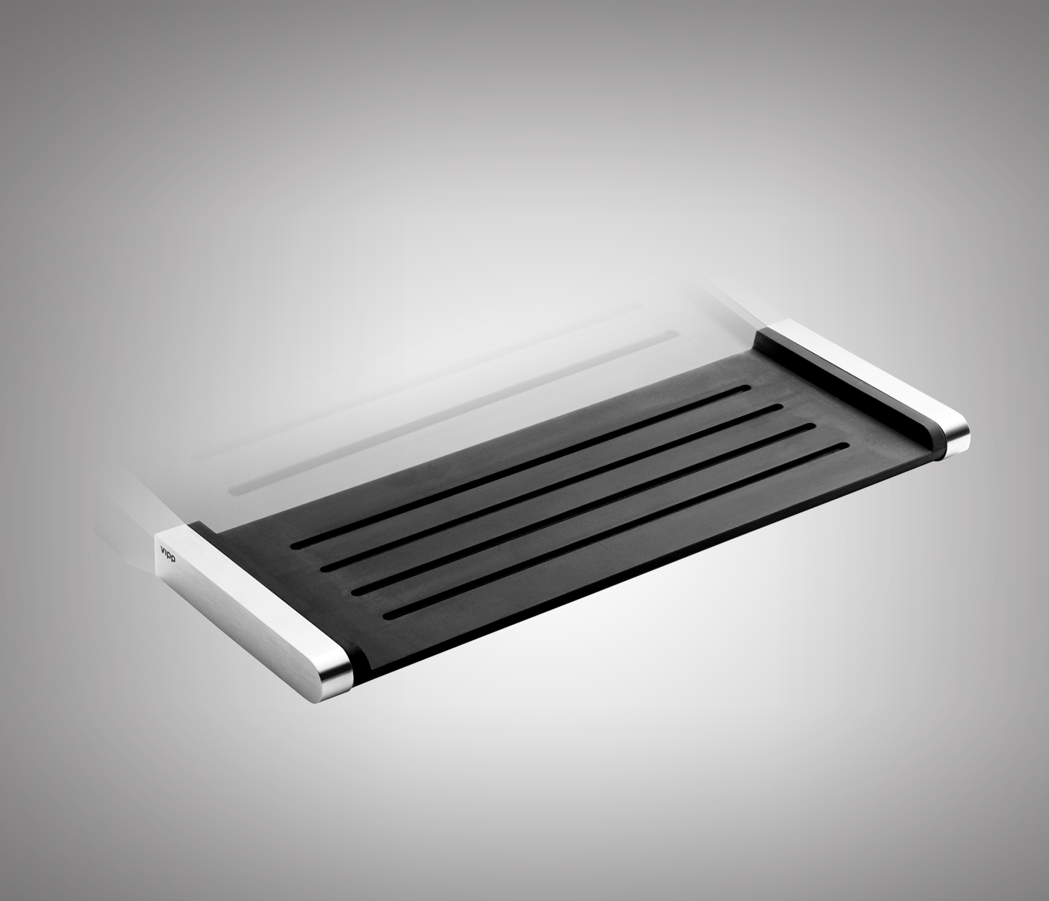Vipp6 di Vipp. Un semplice scaffale rivestito da una superficie gommata per una migliore tenuta quando è bagnato. E’ facile da pulire e perfetto per gli ambienti umidi, come il bagno, la doccia o la cucina.