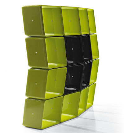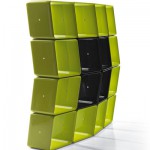 Obo di Cerruti Baleri. Si basa sulla ripetizione di un contenitore modulare realizzato in materiale plastico lucido. Le varie combinazioni creano un sistema di contenimento di oggetti e separazione di spazi da adattare a ogni stanza, In bianco o nero per uno stile più sobrio, o arancio e verde lime se volete creare una zona vitaminica.