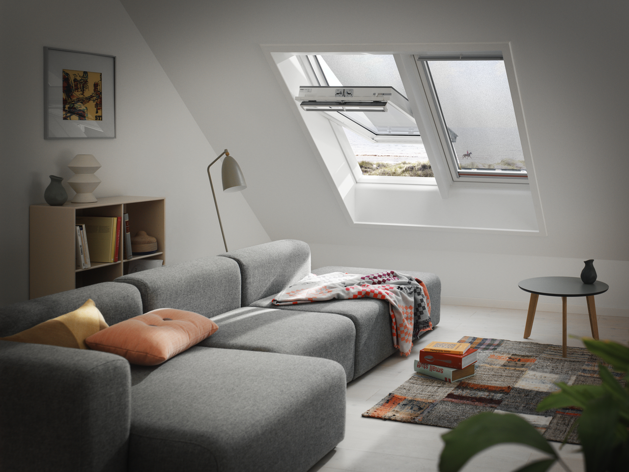 Utilizzare una tenda parasole esterna o una tapparella VELUX è un ottimo metodo per abbattere il caldo estivo che entra dalle finestre per tetti VELUX.