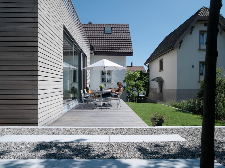 La richiesta iniziale della famiglia non riguardava la luce, ma lo spazio e per ottenerlo è stata costruita un’estensione sul retro dell’edificio, sul lato del giardino.